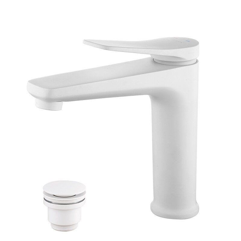 Смеситель для раковины Lemark Bronx LM3737MW, с донным клапаном, белый матовый