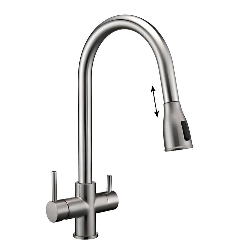 Смеситель Paulmark Lange La214212-NI для кухонной мойки, под фильтр, с выдвижным изливом, никель